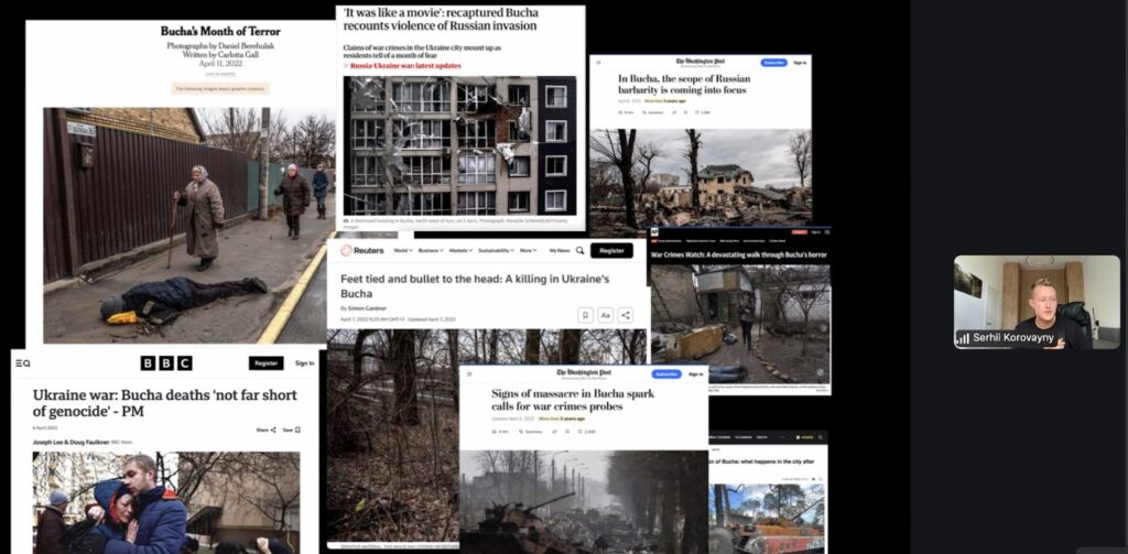 Every truthful photo about events on the Ukrainian frontline or de-occupied cities and villages, about the shelling of civilians, is evidence of russian crimes. That is why showing the truth about the war is a crucial mission for photojournalists. However, it is becoming increasingly difficult to fulfill it. Fake photos, manipulations, and images created by artificial intelligence undermine trust in the profession. How to recognize manipulations, make a quality photo report about “hot” events, how to prepare for filming, and why it is so important to adhere to ethical principles – this was discussed during the National Union of Journalists of Ukraine’s (NUJU) webinar called Photos Against Fakes: How To Capture The Truth In The Context Of Information Warfare. It was conducted by Serhii Korovainyi, a photographer and photojournalism teacher at the Kyiv-Mohyla Academy, as part of the NUJU project called Strengthening the Resilience of Frontline Media as a Tool to Combat Disinformation.