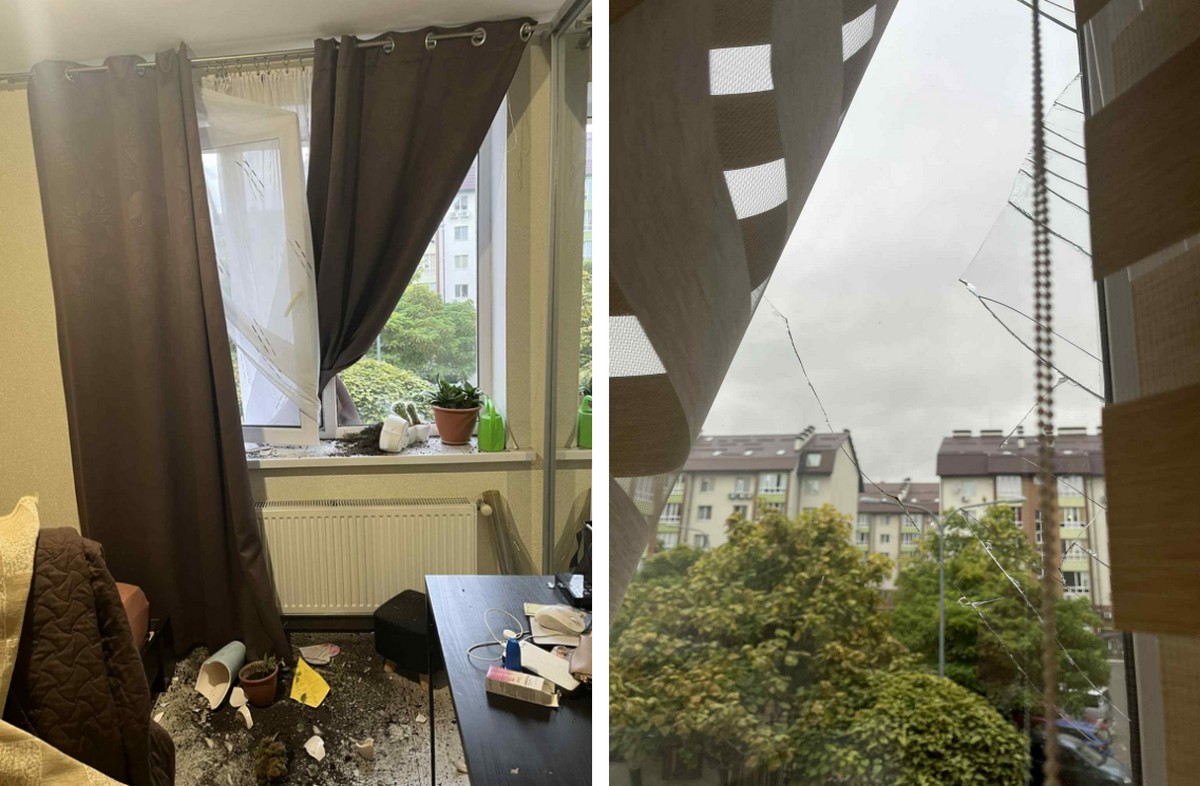 The journalist’s apartment suffered serious damage: three window frames were torn out and deformed, several panes were broken, and the ceiling on the loggia collapsed. According to the village council commission’s conclusion, all windows need to be replaced.