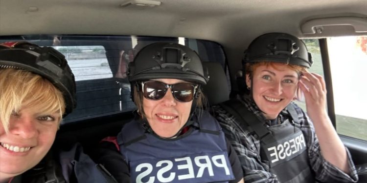 “It’s very convenient when you go from Kyiv and know that your colleagues will take care of your protection, provide reliable modern equipment, and with it a sense of support,” say the members of the 1+1 TV channel film crew, in particular, editors Nataliya Nahorna, Ella Bilostotska and cameraman Oleksandr Parakhonskyi. Recently, they filmed a story about the life of the front-line community in bulletproof vests and helmets provided to them by the Zaporizhzhia Journalists’ Solidarity Center (JSC) of the National Union of Journalists of Ukraine (NUJU).